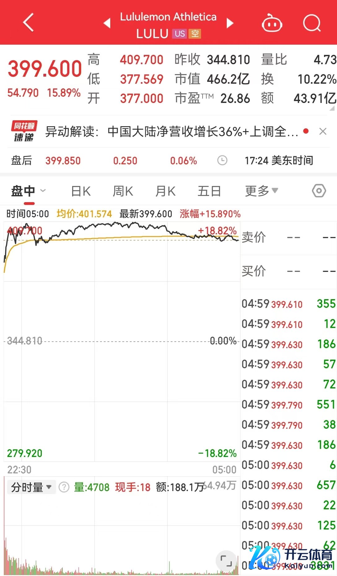Lululemon涨近16%,创六年来最好单日发达,公司Q3功绩超预期,并上调年度功绩指点,文书加多10亿好意思元回购运筹帷幄。