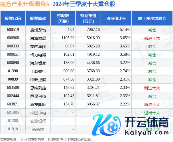 南边产业升级羼杂A为羼杂型-偏股基金,凭据最新一期基金季报袒露,该基金金钱成立:股票占净值比85.69%,无债券类金钱,现款占净值比10.1%。基金十大重仓股如下: