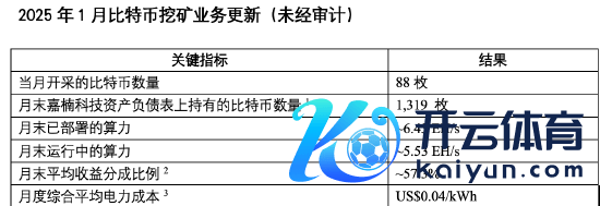 新浪科技讯 2月19日晚间音讯九游体育app娱乐,本日,嘉楠科技发布了落幕2025年1月31日未经审计的比特币挖矿业务月度更新信息。